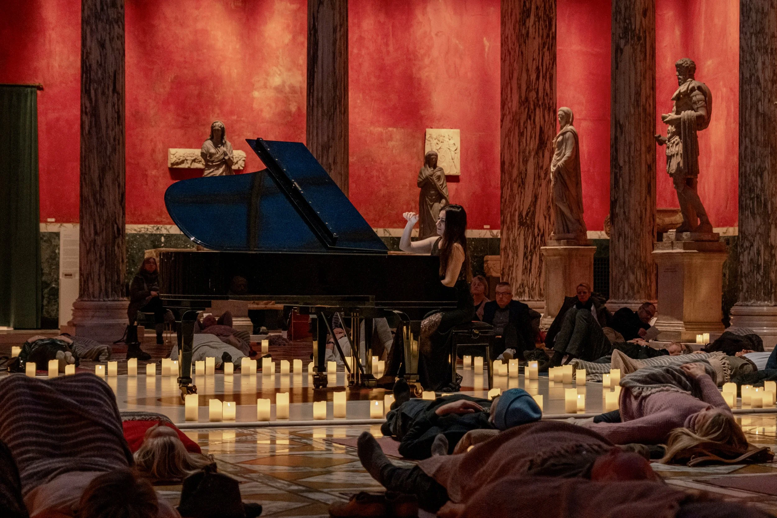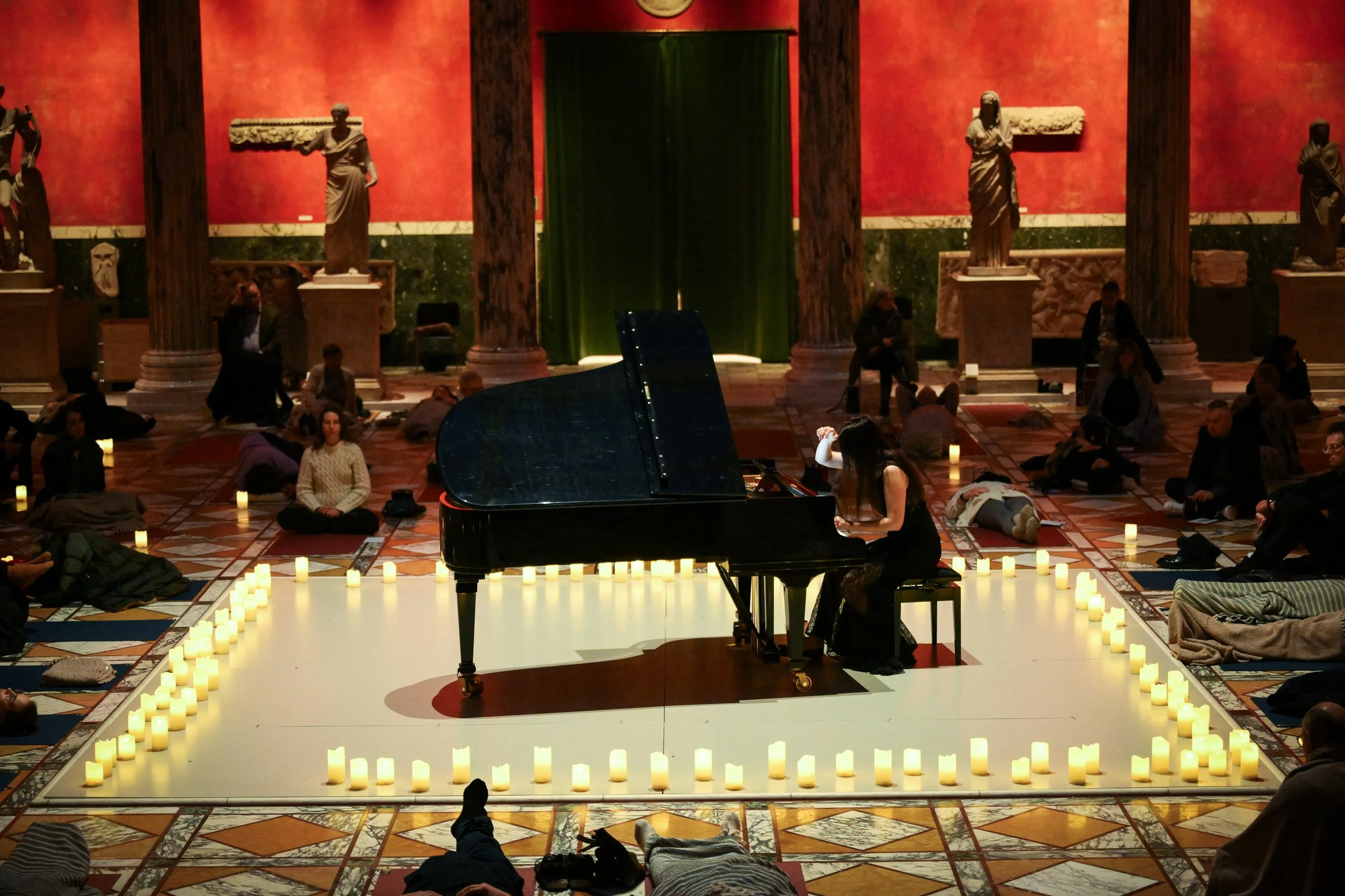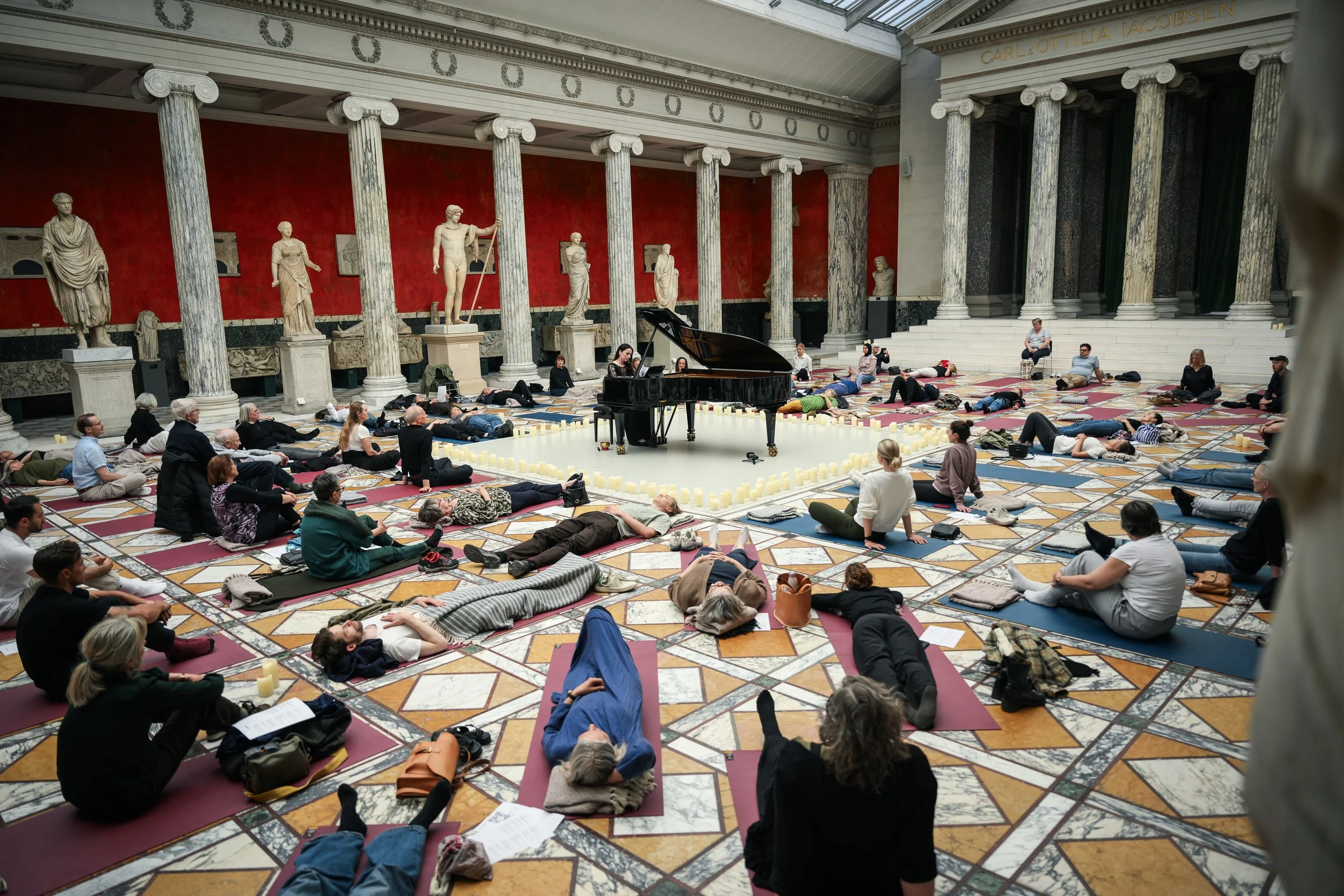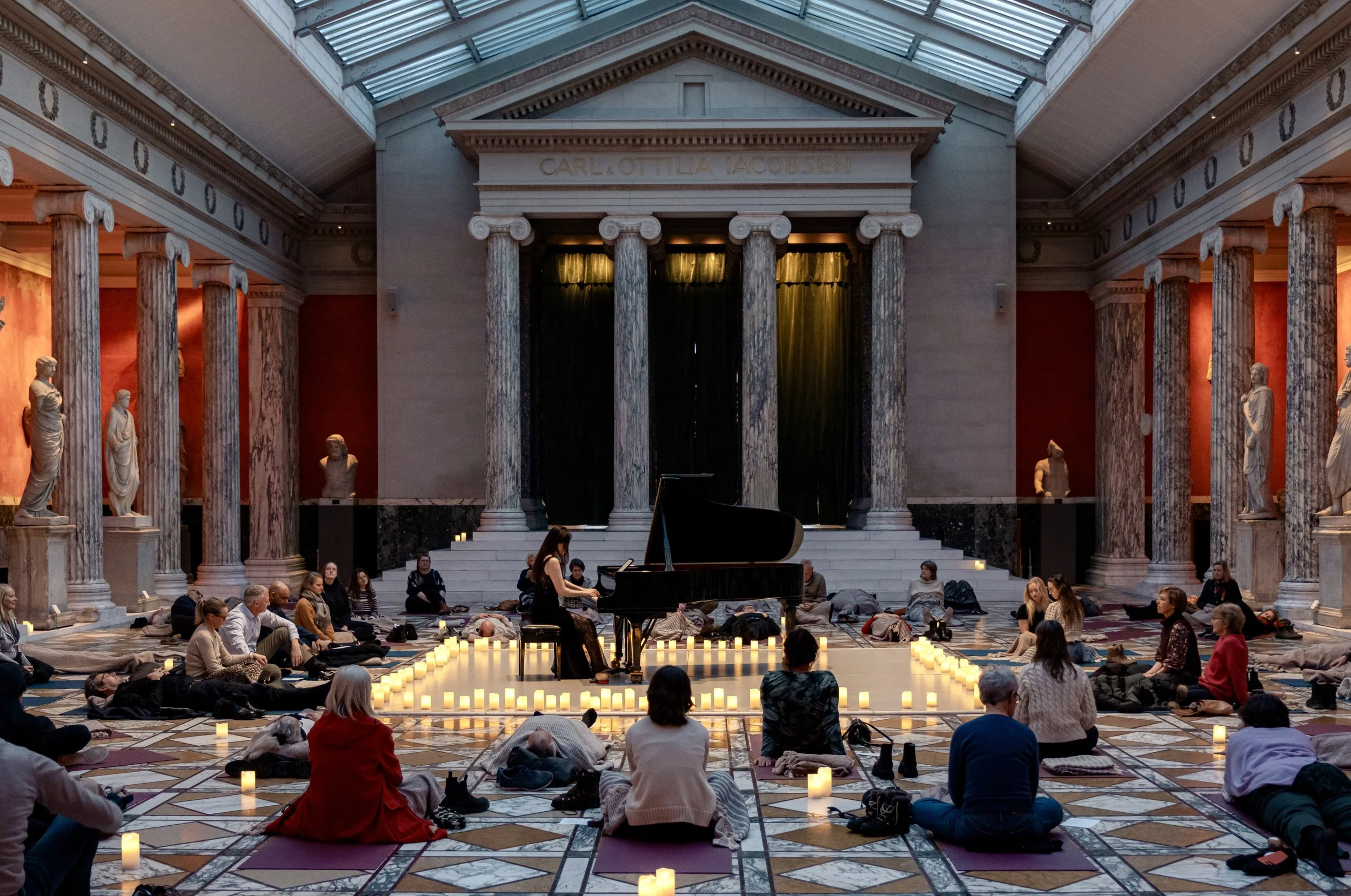 Et sted, hvor man kan lægge sig ned eller sidde omkring flyglet, omfavnet af musikken, og lade tonerne folde sig ud som en levende strøm i stilhed - uden klapsalver, bare væren.