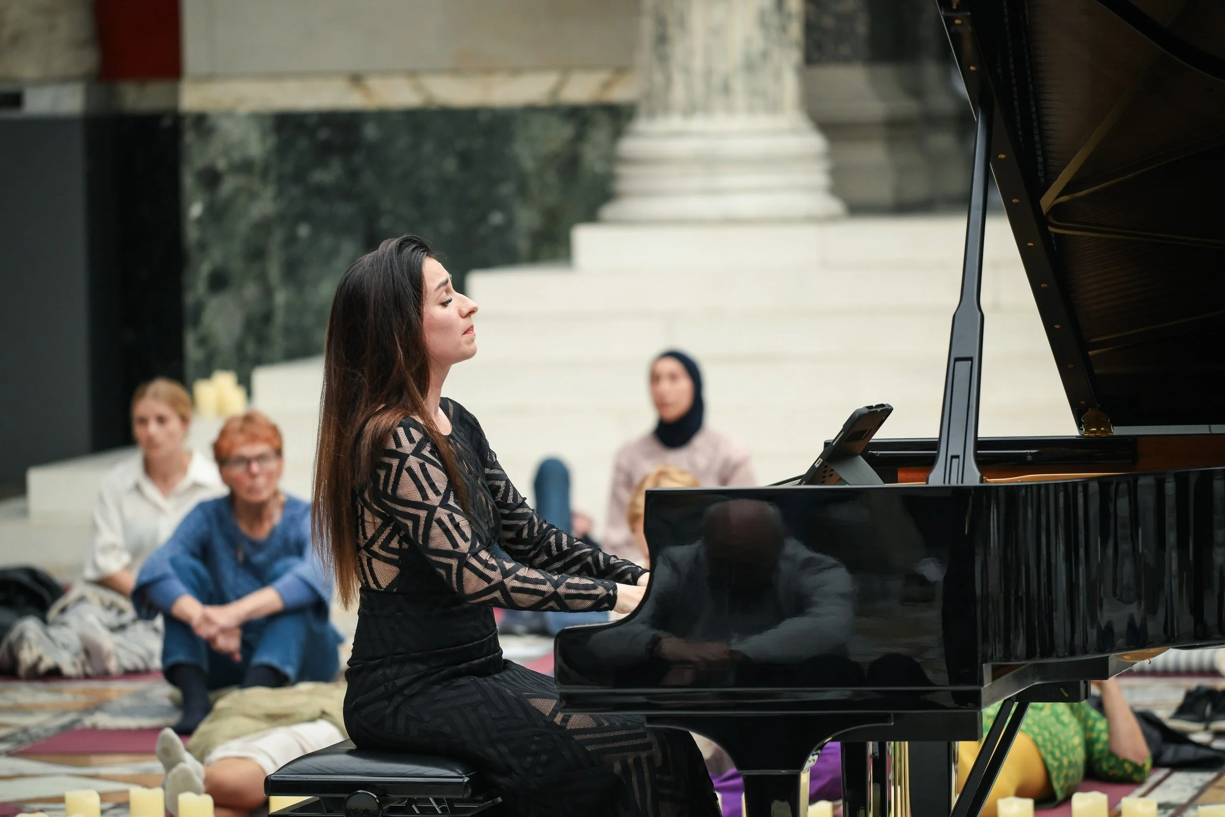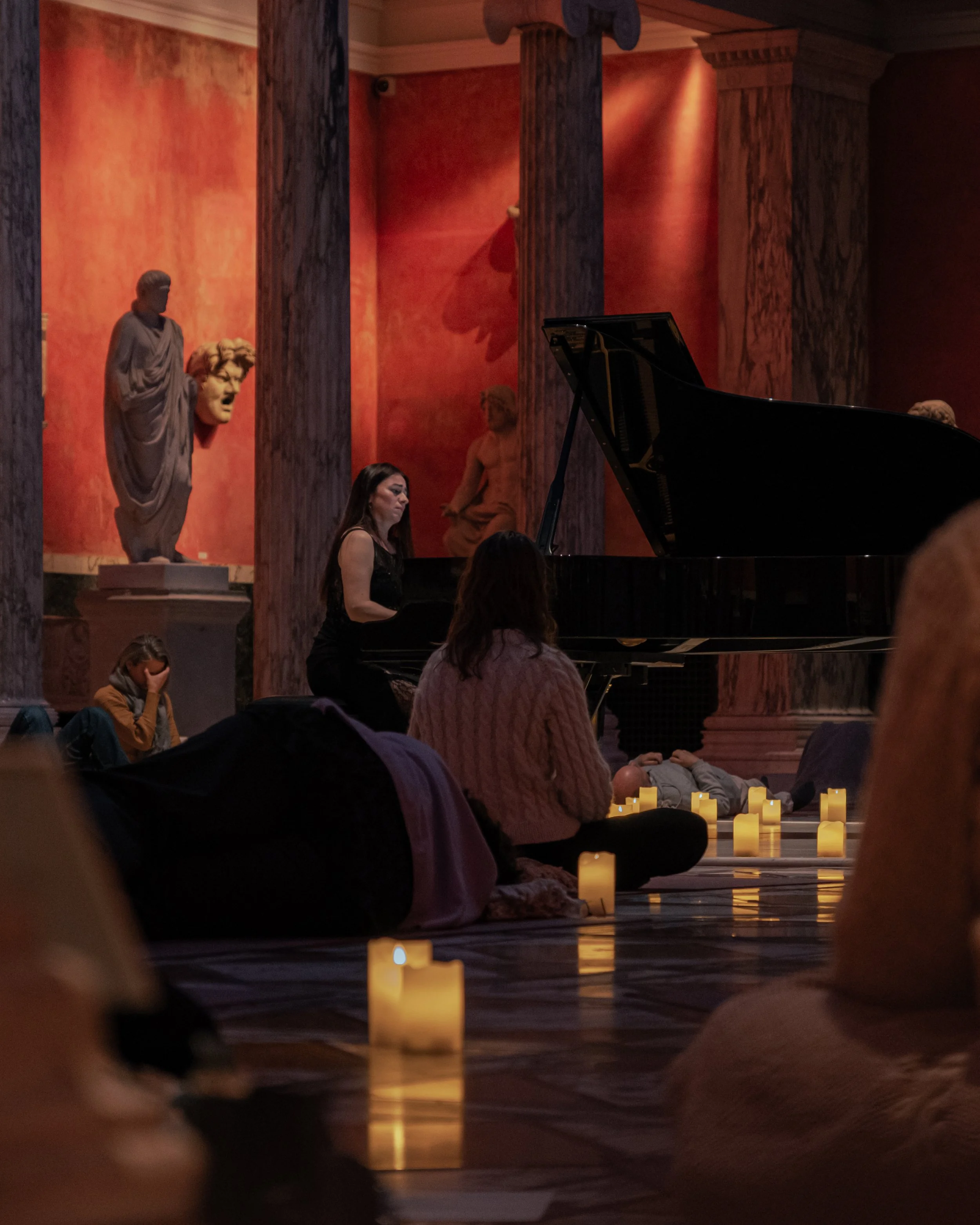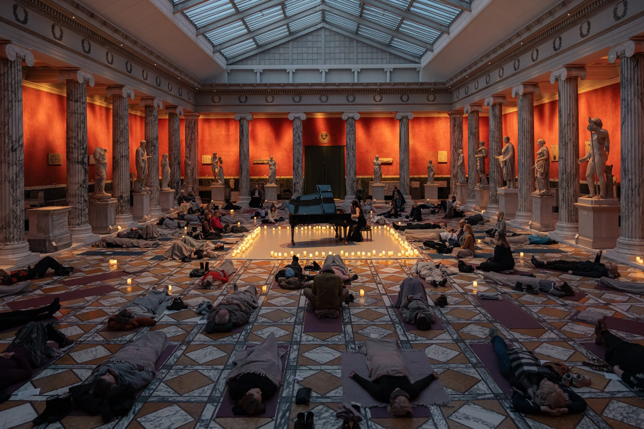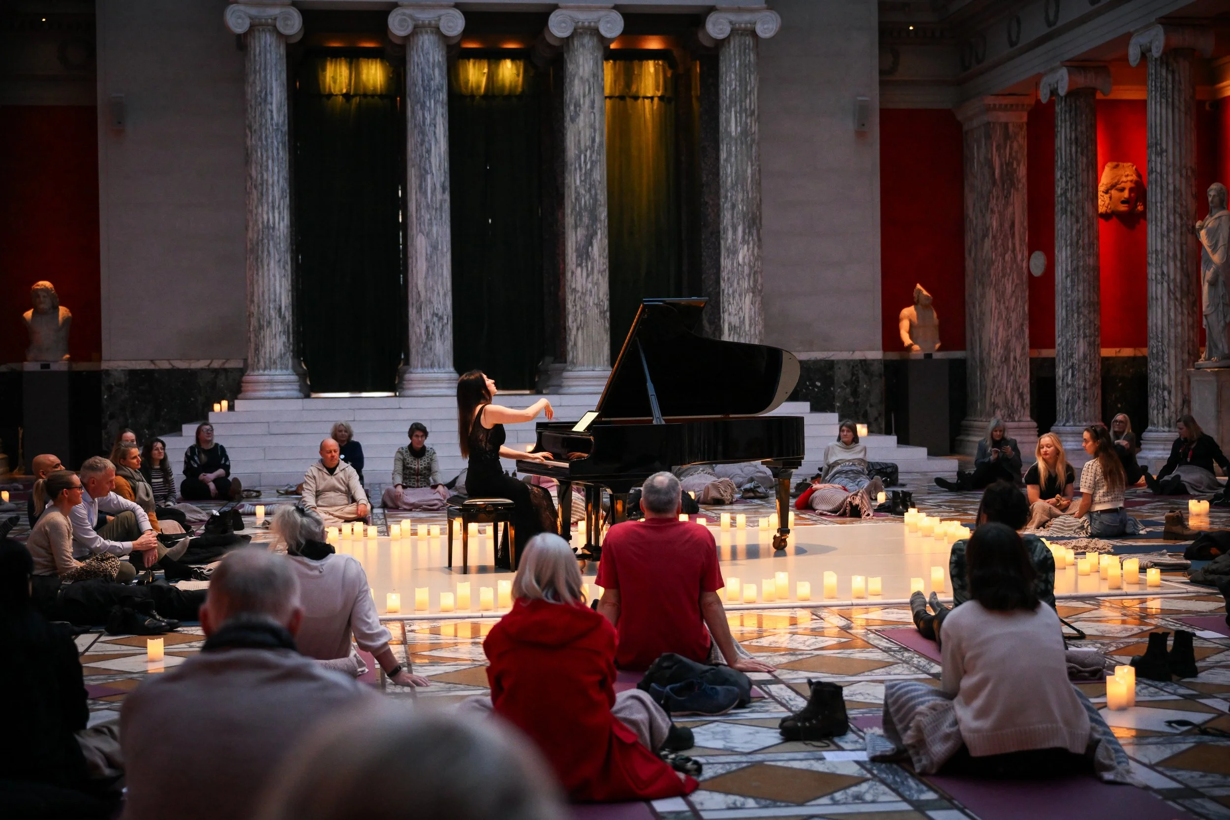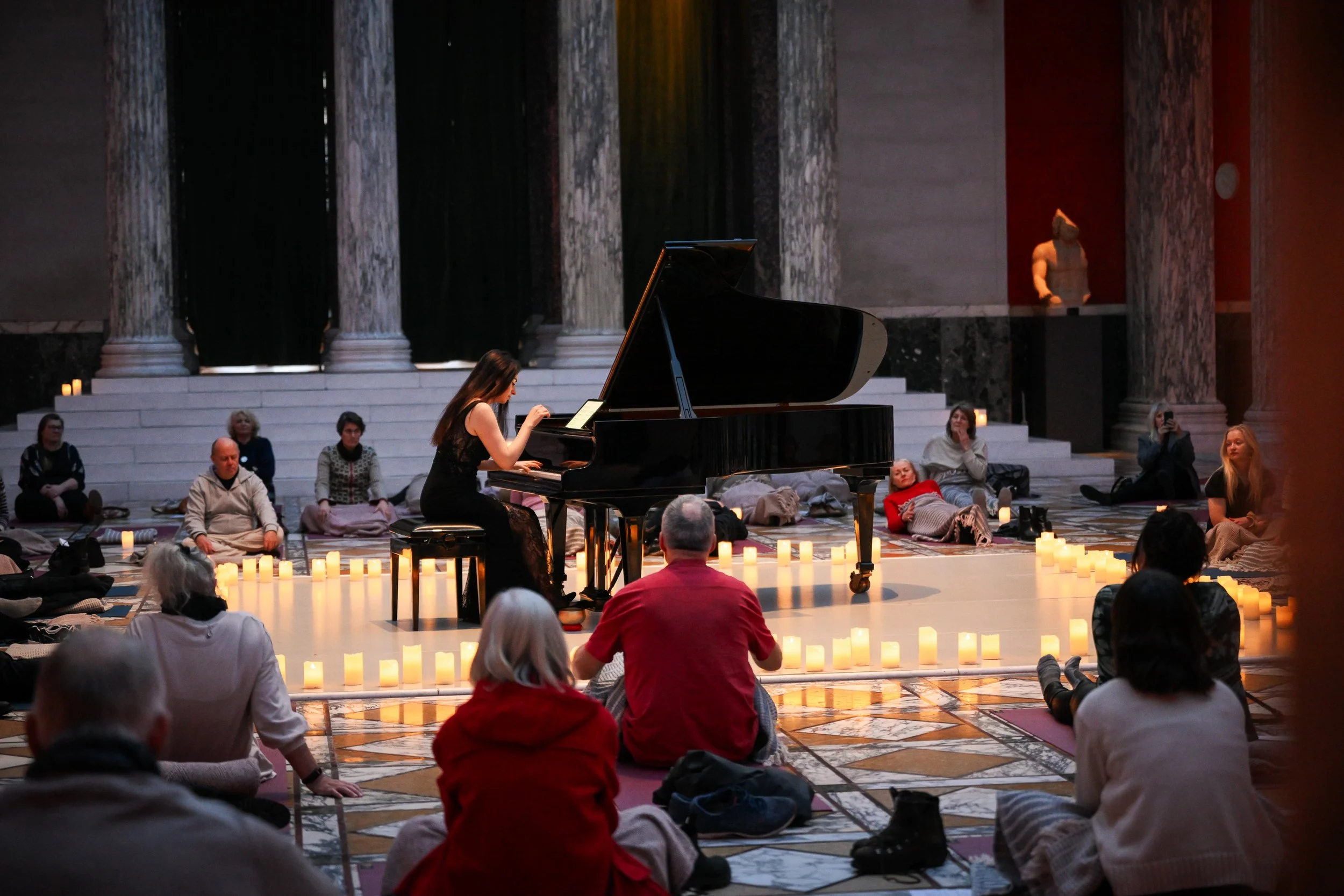 Et sted, hvor man kan lægge sig ned eller sidde omkring flyglet, omfavnet af musikken, og lade tonerne folde sig ud som en levende strøm i stilhed - uden klapsalver, bare væren.